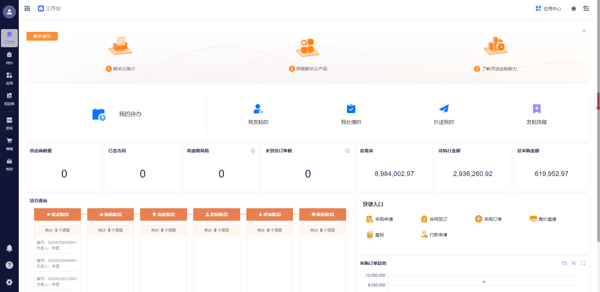 在数字化时代,智能采购系统已不再是企业的“加分项”,而是提升核心竞争力的“必备项”。鲸采云采购管理系统以数据与算法为核心,通过全链路的流程优化,帮助企业彻底摆脱传统采购的痛点,实现采购环节的降本增效、风险可控、协同高效。无论是中小型企业还是大型集团企业,都能通过鲸采云智能采购系统找到贴合自身需求的采购数字化解决方案。