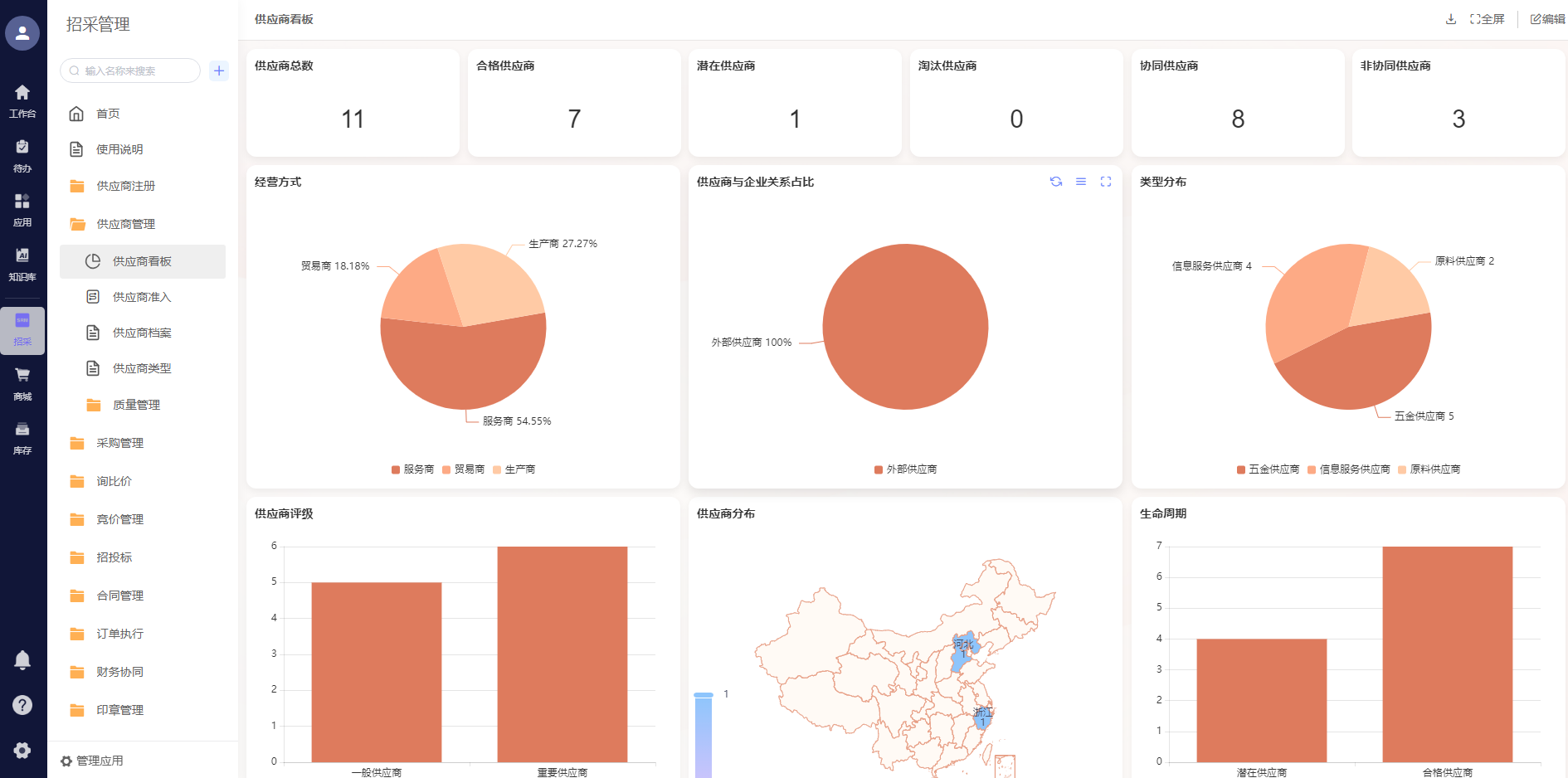 建立企业供应商信息库,实现供应商准入、评估、分级管理,降低采购风险 |