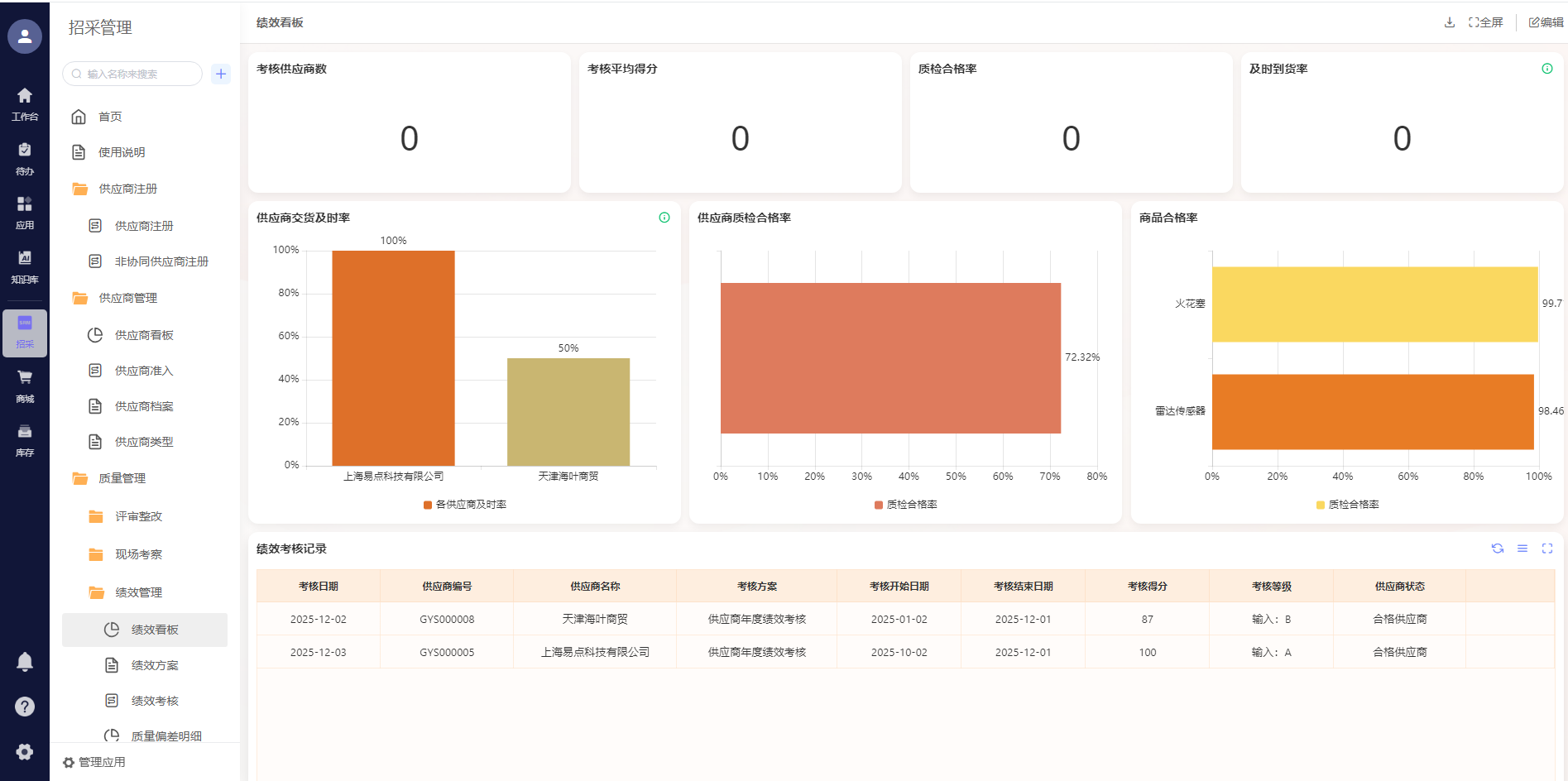 二是实现全流程线上化管理,将原本分散的线下表格、人工统计工作全部迁移至线上,供应商的基础信息录入、绩效数据采集、考评结果生成等环节均通过系统完成,大幅减少人工操作误差;