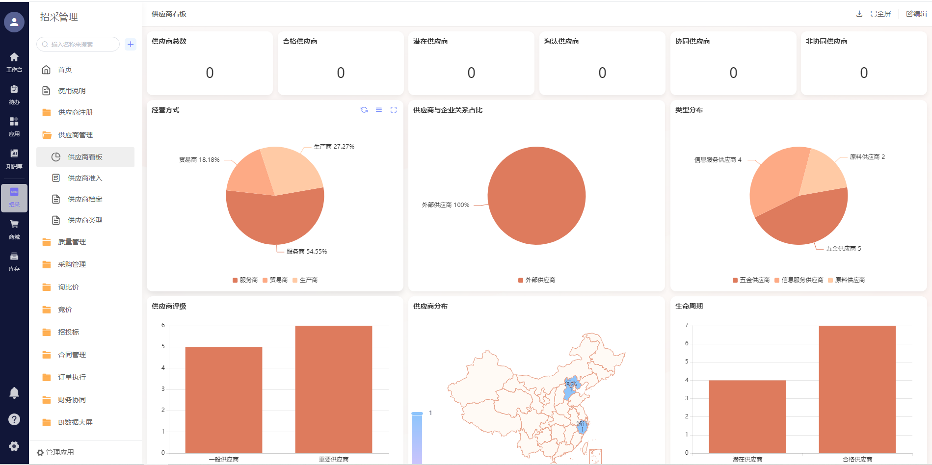 供应商全生命周期管理、资质审核、全程记录追溯 |
