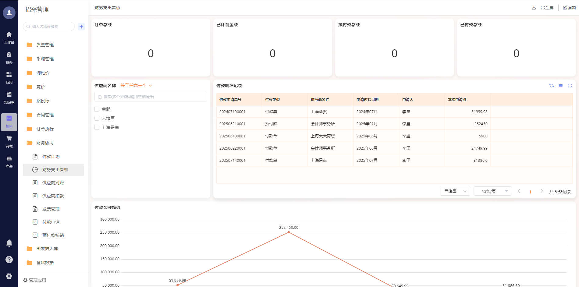 采购全程线上化、数据实时可视化、审批节点可追溯 |