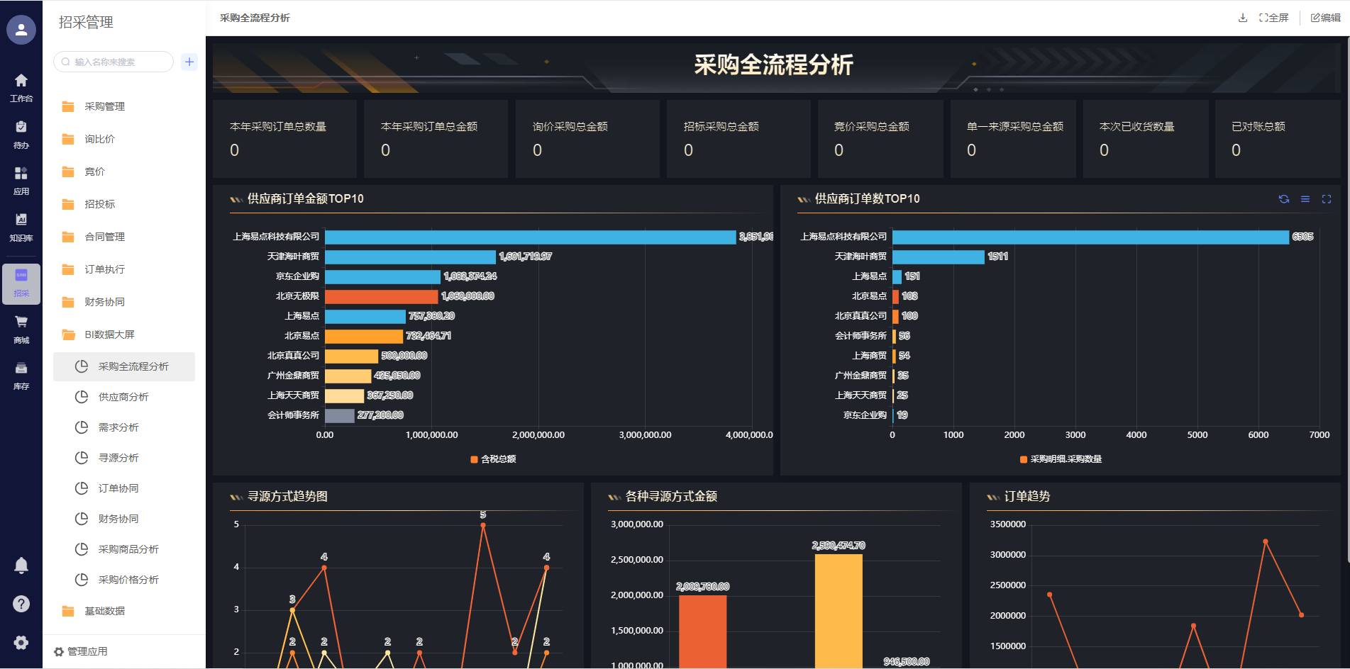 - 预置几十套标准报表:涵盖采购需求、寻源效果、供应商表现、预算执行等核心维度;