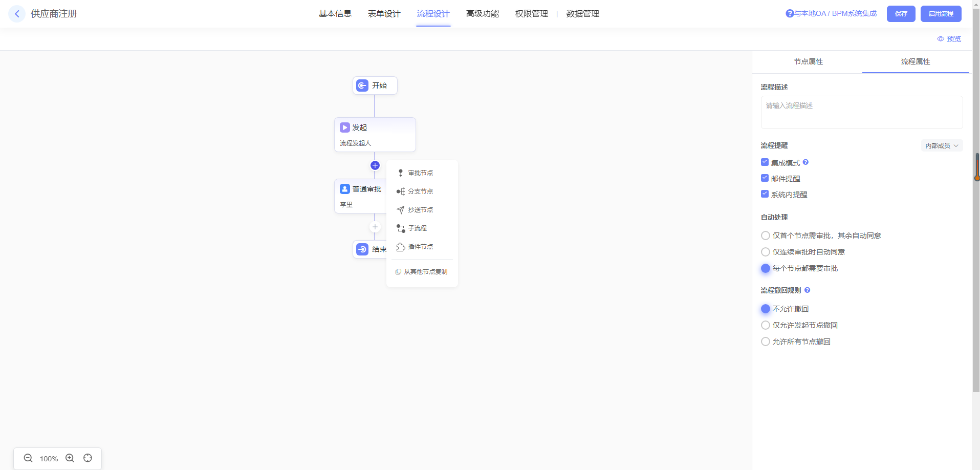 系统支持条件分支,可以设置“金额超过10万自动流转至财务总监”“战略供应商直通绿色通道”等智能规则。当实际业务调整时,流程也能快速同步更新,避免了因系统僵化导致的管理滞后。