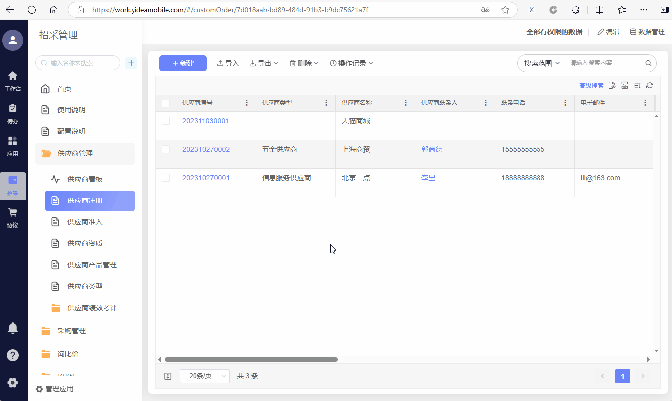 - 分类与标签:按行业、品类、合作等级划分供应商库,支持自定义标签(如"战略伙伴""备用供应商");