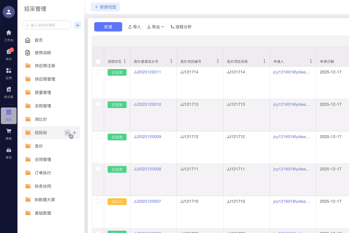 供应商、询比价、竞价、招投标、合同订单等模块随心选择,自定义权限控制,实现功能增删改;