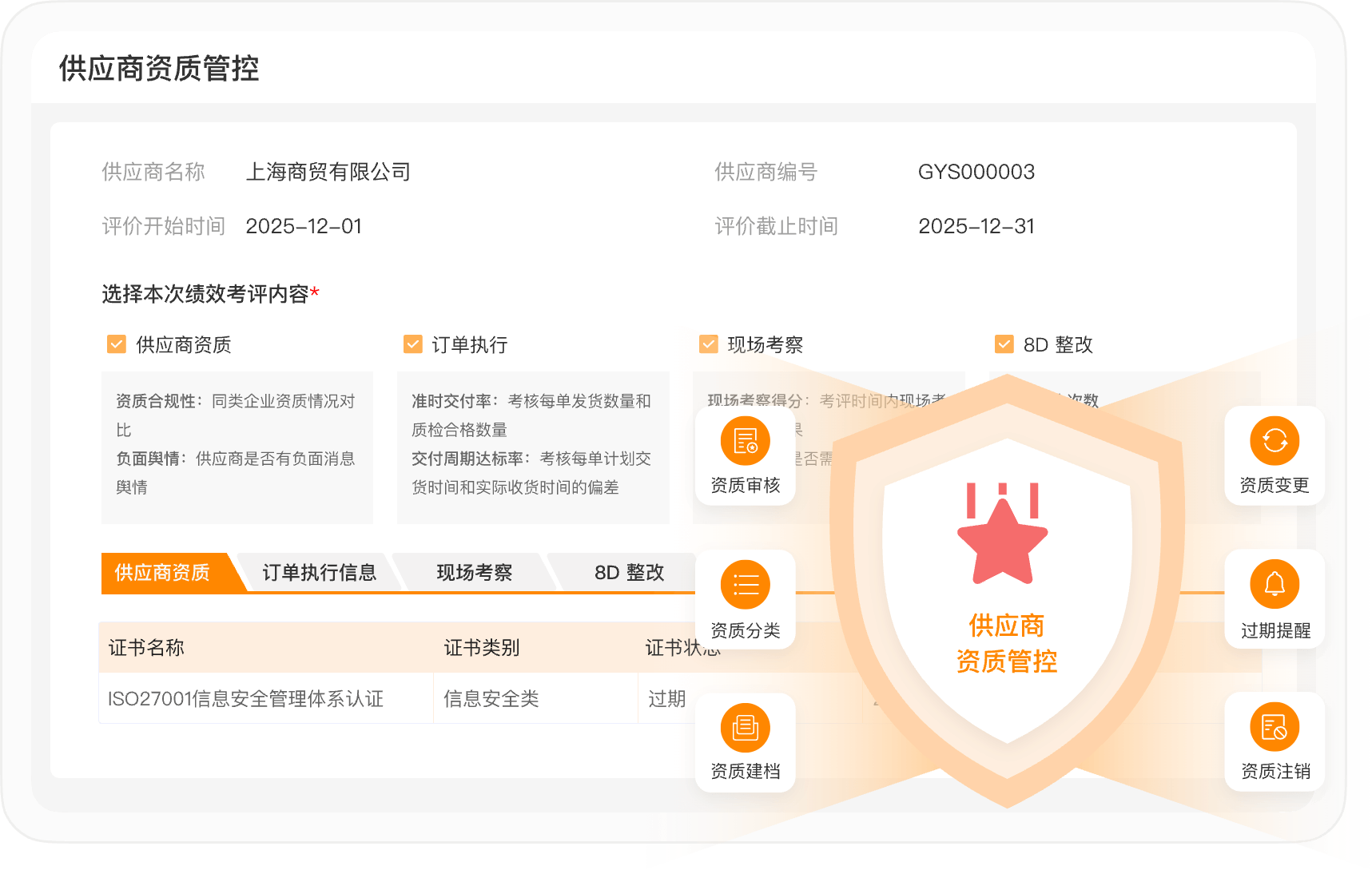 打造一体化的资质管理平台,覆盖审核、分类、建档、到期提醒及权限控制等全流程闭环管理;