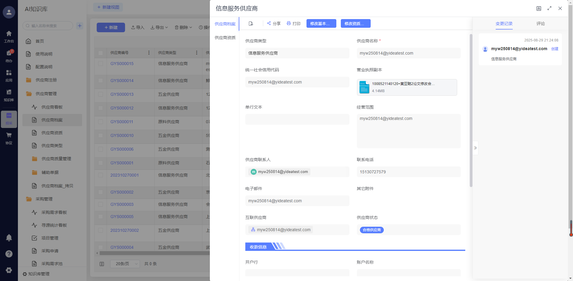 - 供应商管理模块:支持供应商准入审核、资质档案管理、绩效评估、分级分类管理,企业可根据自身需求设置审核节点(如法务审核、技术审核),确保供应商合规;同时,系统自动记录供应商合作历史,生成多维度绩效报表(如交付准时率、质量合格率),帮助企业筛选优质供应商。