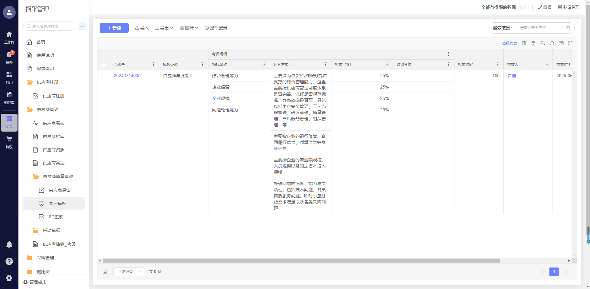 - 动态绩效评估:系统自动采集交付及时率、质量合格率、价格竞争力、服务响应速度等核心 KPI