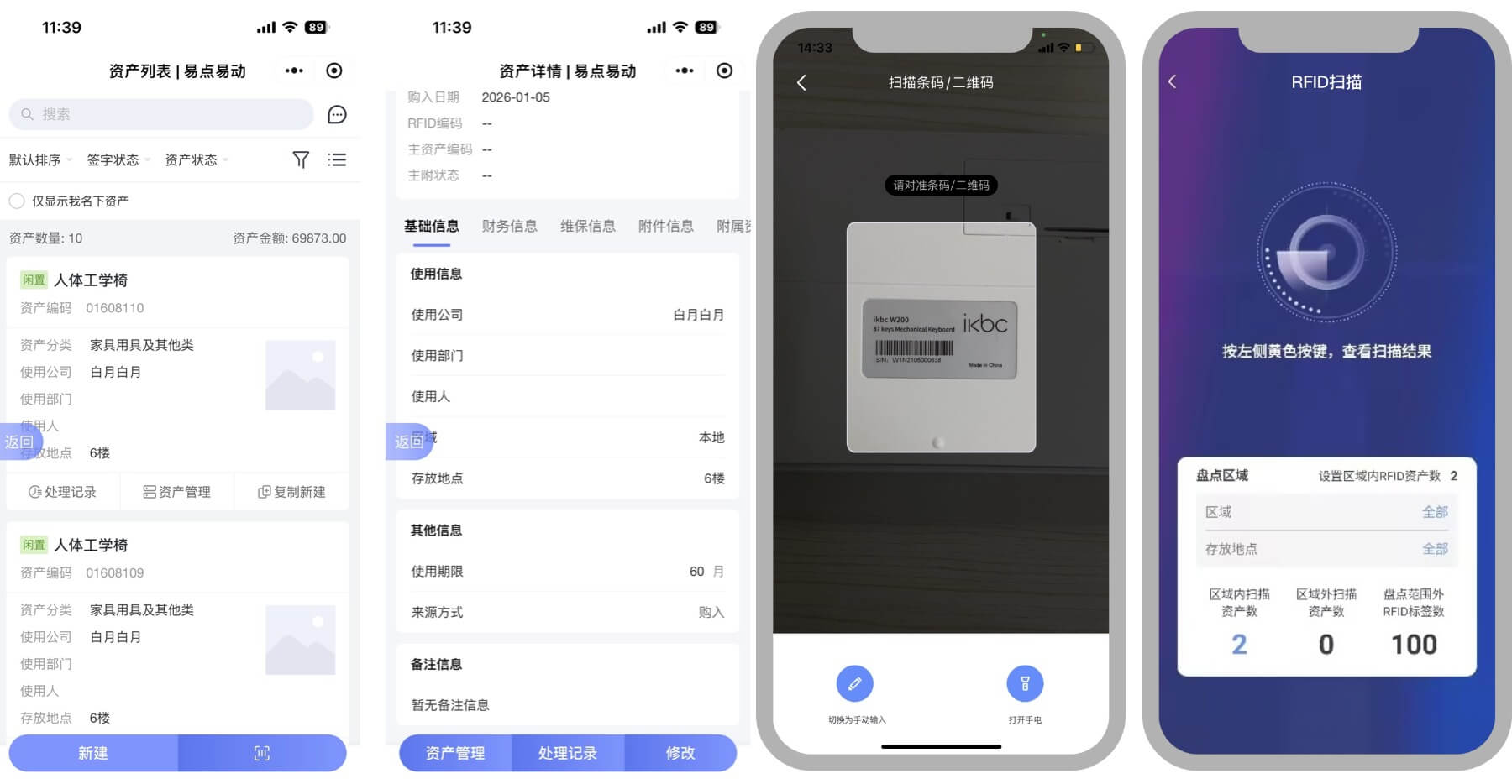 技术实现高效盘点,同时资产内购处置需支持移动支付,管理员交接需自动发起单据并完成资产确认,传统资产管理工具无法覆盖全场景需求。