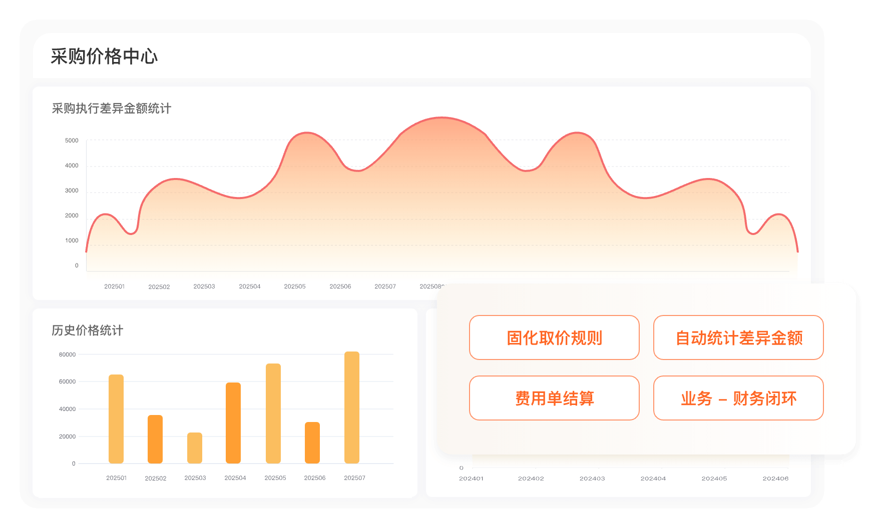 自动统计采购执行差异金额,通过费用单完成结算,实现业务 - 财务闭环,提升结算效率与精度。